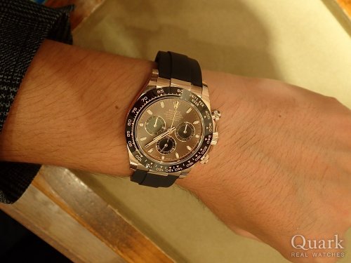 K様 この度はクォーク仙台店をご利用くださいまして誠にありがとうございます。裏蓋シールが残っている好条件の一本をご案内でき私も大変うれしく存じます。はじめはご愛用されるときにドキドキしちゃうかもしれませんが、ようやくGETされたデイトナなのでたくさんご愛用いただけましたら幸甚に存じます。自慢はしないと仰っておりましたが、着けているだけで視線を集めちゃうかもしれませんので、覚悟しておいてください(笑)。また、お忙しいところご予定を調整していただき心より感謝申し上げます。予想通り、K様が私にとって仙台店最後のお客様となりました。貴重なお買い物のお手伝いができましたこと、大変光栄に存じます。佐野も今頃東京で喜んでいると思います(笑)。店頭でサイズ調整、ブレス洗浄を無料で承っておりますので、お近くにお越しの際はまたお店にもお立ち寄りくださいませ。そして私は銀座でお待ちしております!これからもK様のロレックスライフが素晴らしいお時間として続いていきますよう全力で応援いたしますので、なにかございましたらいつでもご相談くださいませ。それでは今後とも末永いお付き合いのほどよろしくお願い申し上げます。