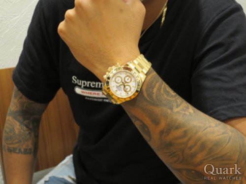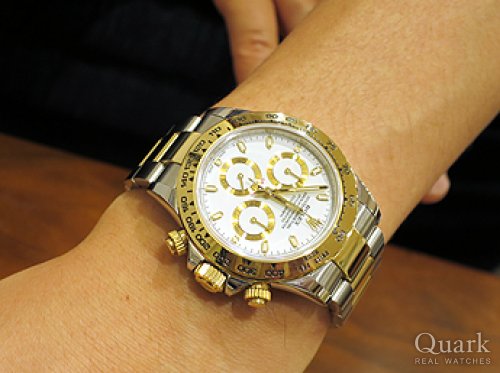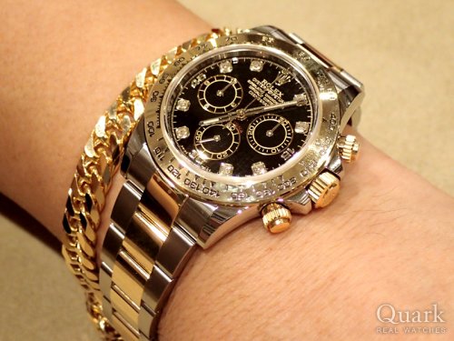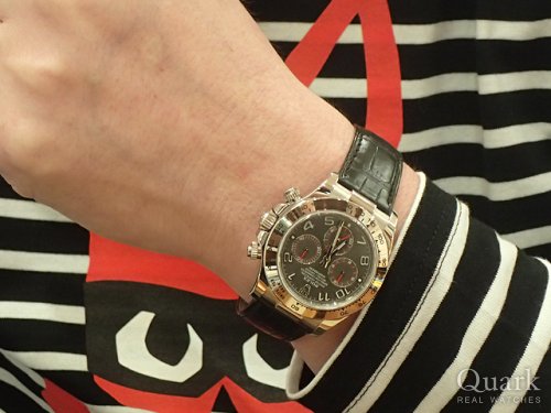 Y様、この度はクォークをご利用頂き誠に有難うございます。ご購入頂きました、デイトナRef.116523はステンレススティールと18金イエローゴールドのコンビネーションで豪華な雰囲気が何よりも魅力です。ブラック文字盤は、精悍な感じで腕元を引き締めてくれる効果もあります。スポーツモデルのなかでも最高峰に位置するデイトナは一生モノとして相応しいです。Y様に大変良くお似合いでしたので、末永くご愛用下さいませ。今後ともクォーク神戸店を何卒宜しくお願い致します。クォーク神戸店 増田