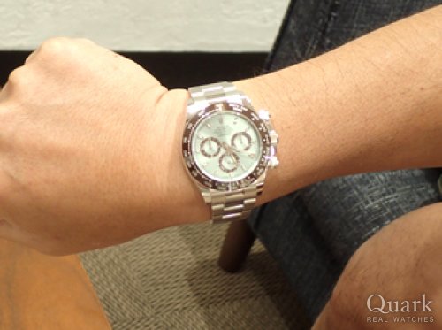 2013年のプラチナDAYTONAが出始めた当初から購入を検討していた。金額が金額だけに購入するには心の準備が必要で、遂に購入しようと意を決してクォークさんのHPを見たら、たまたまクォーク名古屋店さんに中古のRef.116506 アイスブルーがある事を知って、直ぐにお店に行きました。オーバーホールしたばかりでコンディションも良く、巡り巡った運命だと思い購入に至りました。