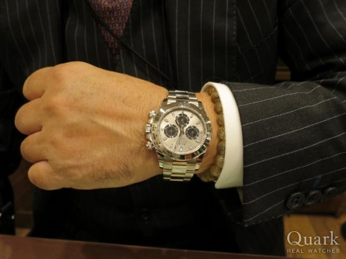 K様 いつも私共クォークをご利用頂きまして誠に有難う御座います。Ref.116500LN(白文字盤)は、価格が上昇中の大人気モデルでございますので、ご検討いただけてとても嬉しく思います。Ref.16570(白文字盤)もお似合いでしたが、デイトナもとてもお似合いでございます!また、気になるお時計がありましたら、お気軽にお問い合わせ下さいませ。今後とも末永いお付き合いの程、宜しくお願い申し上げます。クォーク横浜店 杉野