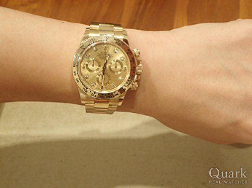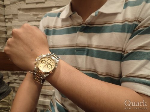 M様 いつもクォーク名古屋店を御利用頂き、誠にありがとうございます。旧型のRef.116520はスポーツらしさとエレガントさの両方を兼ね備えたデザインとなりますので、様々なシーンで対応出来ると思います。店頭ではいろいろ悩まれていましたが、やはりデイトナに対しての思いが強かったような気がします。圧倒的に存在感のあるデイトナはM様にとても良くお似合いでしたよ。他の御時計同様、しっかりサポートに努めさせて頂きますので、何か気になる事が御座いましたら、遠慮なく御相談下さい。