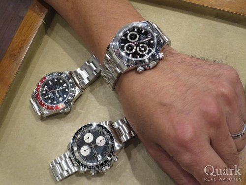 I様 いつもクォークをご利用頂き、誠にありがとうございます。今回お選び頂きました新型デイトナは、セラミックベゼルを備えることでさらにスポーティな表情を見せてくれます。また、傷が入りにくいというのも、日常使いにおいては嬉しいポイントです。I様の仰る通り、デイトナはいつでもトップクラスの人気を誇るモデルですので、末永くご愛用頂けると思います。メンテナンスなどで気になる点がございましたら、お気軽にご相談下さいませ。今後とも当店を宜しくお願い申し上げます。