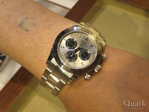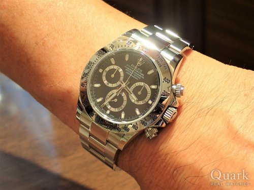 K様 いつも私共クォークをご利用頂きまして誠に有難う御座います。 Ref.116520(黒文字盤)は、生産終了から価格が上昇し、増税前に購入したいというお客様が増加しております。最終年式のデイトナは、在庫数が少なく、とても希少な商品でございます。タイミング良くご検討いただけて、とても嬉しく思います。K様からいただきましたお言葉、とても勉強させていただきました。感謝の気持ちでいっぱいでございます。オススメのパンですが、私を含め他スタッフにも大人気で、凄く美味しかったです!今後とも末永いお付き合いの程、宜しくお願い申し上げます。クォーク横浜店 杉野