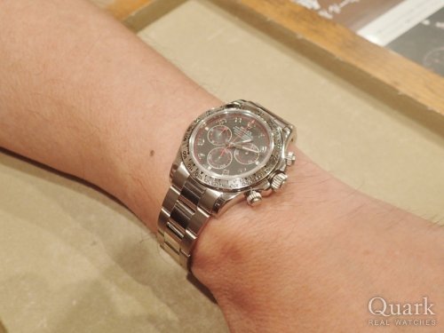 N様 この度はクォーク名古屋店をご利用頂き、誠にありがとう御座います。当店でN様が御所望しておりました新品の116509の青文字盤をご案内出来て大変嬉しく思います。ホワイトゴールドのケースにネイビーブルーの濃淡のある青文字盤は、このモデルならではの個性になります。今お持ちのミルガウスとデイトナを使い分けて頂けると幸いで御座います。従業員の方の励みになるよういっぱい自慢してあげて下さいね。また今後とも、お探しの時計やご不明点など御座いましたら、スタッフ一同しっかりサポートさせて頂きます。これからも末長いお付き合いの程、宜しくお願い致します。