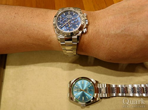 新品のRef.116509の青文字盤を探して様々なお店を回っていたら、クォークさんで見つかったので購入しました。