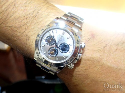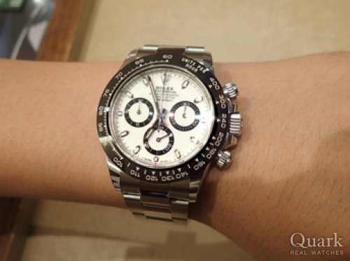 K様、この度はクォーク上野本店をご利用頂きまして誠にありがとうございます。時計好きのK様にDAYTONA Ref.116509スチールダイヤルのご購入のお手伝いが出来た事、大変嬉しく思います。今回ご購入頂いたお時計はケース・ブレスなど全てに18KWGを使用し重厚な高級感を醸し出すオールホワイトゴールド製のデイトナとなります。手にした人でしか味わう事の出来ない、金無垢ならではの重厚感をご堪能下さいませ。また時計のことで何かございましたらお気軽にご相談くださいませ。今後ともクォーク上野本店を何卒よろしくお願い申し上げます。  クォーク上野本店 寺田