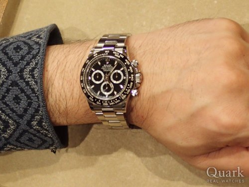 N様 日頃より私共クォークをご利用頂き、誠に有難う御座います。また、お忙しい中ご来店頂き、誠に有難う御座いました。遂にデイトナ・オーナー様ですね。おめでとうございます!デイトナは、ロレックス・スポーツモデルの最高峰として、これまでもとても人気の高いモデルで御座いましたが、2016年のモデルチェンジからは、更にお問い合わせが多く、話題のモデルで御座います。セラミックベゼルになり、よりスポーティな印象ですね。これまでご愛用頂いておりましたロレックスとはサイズが少し違う為、つけた感じが変わるかと思います。サイズの調整はいつでも承っておりますので、お気軽にお申し付けください。またデイトナは、デザインも格好良く、多くの方から憧れの時計と言われるモデルです。N様の自慢の1本となりましたら嬉しく思います。末長くご愛用頂けますよう、しっかりサポートさせて頂きますので、気になる事等が御座いましたら、是非ご連絡ください。仙台にお越しの際は、お立ち寄り頂き、デイトナの感想を聞かせてください。楽しみにお待ち致しております。今後とも、末長いお付き合いの程、どうぞ、宜しくお願い致します。 クォーク仙台店 麻生