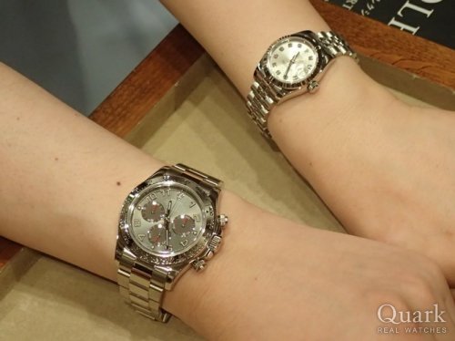 S様 いつもクォーク仙台店をご利用くださいまして誠にありがとうございます。ダイヤルだけでも印象はだいぶ変わりますね。いろいろお見比べいただけて良かったです。どれも雰囲気が違うので、S様のお好みにあう個体をご紹介できてホッとしております。ホワイトゴールドの重み、金無垢にしかない文字盤、これまでもデイトナをご愛用されていらっしゃったS様だからこそ、今回の一本はいろいろな意味でお楽しみいただけることと存じます。ご家族そろってロレックス好きだと刺激もたくさんありそうですね。羨ましい限りでございます。たくさんの場所でご愛用くださいませ。お父様にもさりげなく自慢してくださいね(笑)!すでにロレックス歴が長いS様なので、私の出番はないかもしれませんが、なにか気になることがございましたら、いつでもご連絡くださいませ。店頭にてサイズ調整、ブレス洗浄を引き続き無料で承っておりますので、お時間がございましたらまたお店にも遊びにきてください。そして、次回気になるモデルが出てきましたら、何度でもお探しいたしますので・・・、こちらこそ、『また』宜しくお願い申し上げます(笑)!金無垢なので傷も気になってしまうかもしれませんが、これまでのお時計と同様にたくさんご愛用いただけましたら幸甚に存じます。それではこれからも変わらぬご愛顧を賜りますよう、宜しくお願い申し上げます。