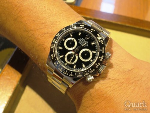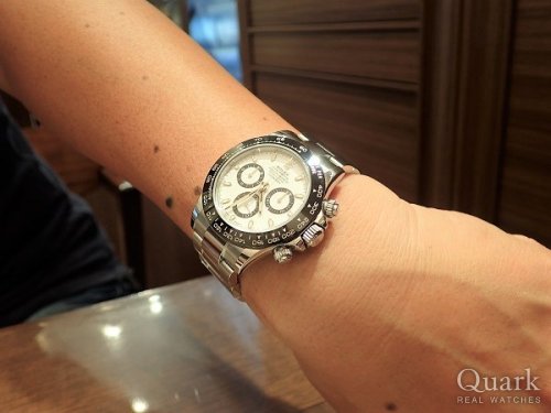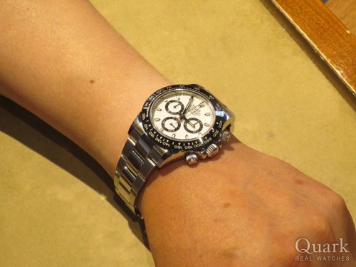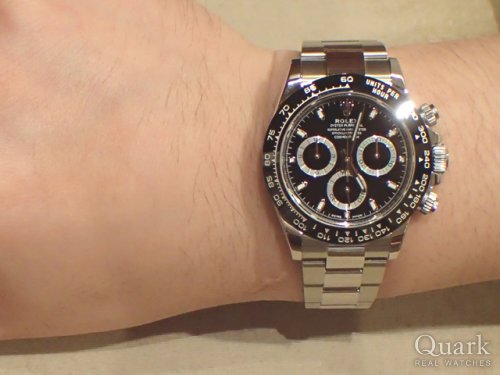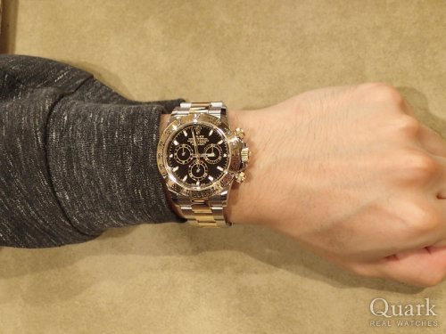 H様 この度は、私共クォークをご利用頂きまして誠に有難う御座います。 Ref.116500LN は、世界的にも大人気で在庫が少なく、価格の上昇が止まりません。タイミング良くご検討いただけて、とても嬉しく思います。転職のタイミングで、ご購入のお手伝いが出来、感激しております!ブレス洗浄や調整は無料で致します。お気軽にお申し付けくださいませ。今後とも末永いお付き合いの程、宜しくお願い申し上げます。