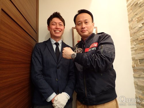 T様 いつもクォーク神戸店をご利用頂き誠にありがとうございます。お忙しい中、何度もご来店頂き感謝申し上げます。T様が以前から手巻きデイトナを探していらっしゃったので、今回はタイミング良くご案内できて私も嬉しく思います。タイミングは重要ですね!次は軍サブをご検討とはさすがです。また、良いヴィンテージがありましたらご紹介させていただきます。三宮にお立ち寄りの際は、またお店に遊びにいらしてください。末永くご愛用頂けますよう、精一杯サポートさせて頂きますので、今後ともクォーク神戸店を宜しくお願い致します。クォーク神戸店 増田