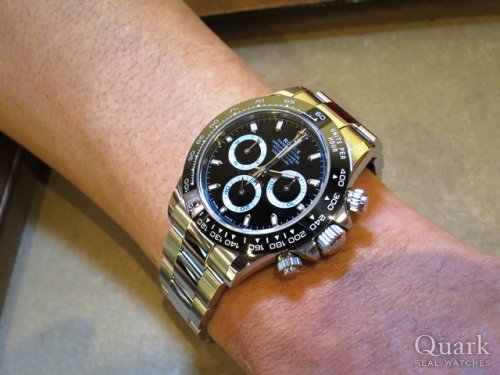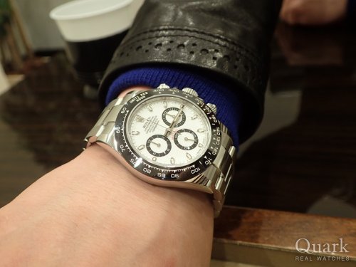 I様 この度はクォーク梅田店をご利用頂き誠に有難う御座います。ご購入頂いた現行モデル デイトナ Ref.116519LN スチールですが、ダイヤルのデザインとがとても人気で弊社でも入手困難なモデルになっております。タイミングよくコンディションの良いお品をご案内出来、私も嬉しく思っております。またオンオフ問わずご使用頂けますしこれからの季節にもピッタリのモデルですので、今後も末永くご愛用頂ければ幸いです。また何かご不明な点などありましたら、お気軽にお問合せ下さいませ。今後とも宜しくお願い致します。