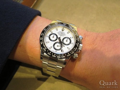 憧れのデイトナを購入する事が出来ました。黒文字盤も恰好良く悩みましたが、白を選びました。