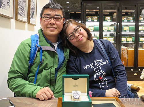 M様 いつもクォーク名古屋店をご利用頂き、誠にありがとう御座います。ご購入までに何度もご来店下さり、本当にありがとう御座いました。沢山お話をさせて頂いた分、私としても最後までご担当させて頂いてとても嬉しく思っております。現行モデルの白文字盤と黒文字盤を二つ持たれるのは羨ましい限りです!白文字盤とは異なるシックで高級感が感じられるデザインとなりますので、装いやシーンに合わせて使い分けて頂ければと思います。毎朝どちらを着けようか・・贅沢な悩みをこれから楽しんで下さい♪(笑) 今後も御時計の事でご相談などが御座いましたら、お気軽に私までお申し付けください。これからも栄にお越しの際は遊びにいらして下さいね。またM様ご夫婦にお会い出来る日を楽しみにしております。