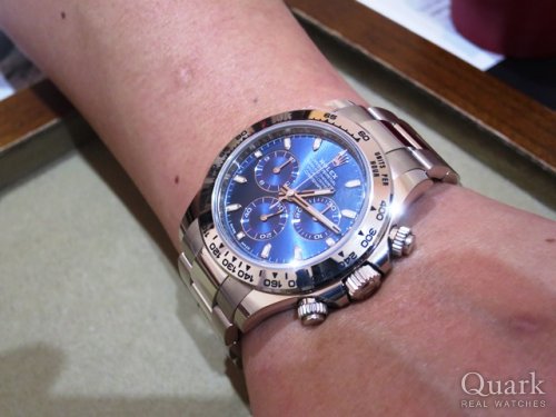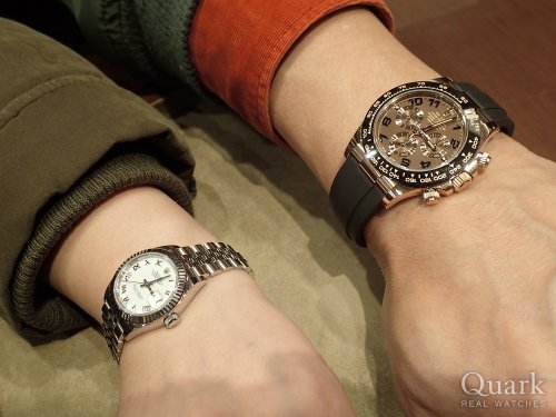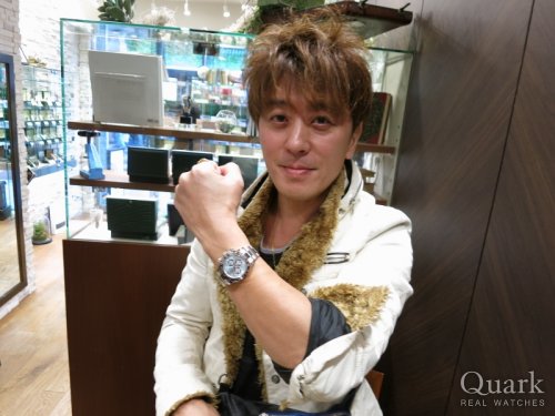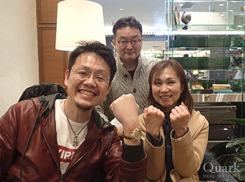 O様 この度はクォーク名古屋店をご利用頂き、誠にありがとう御座います。またご遠方よりご友人皆様でご来店下さり、重ねて御礼を申し上げます。その後、観光は楽しまれましたでしょうか?♪ご購入頂きましたシェル文字盤は以前に比べ、入荷が少なくなっておりタイミング良くご案内出来、とても嬉しく思います。一つとして同じ色合いがないダイヤルは、シェル文字盤ならではの魅力ですね。高級感に溢れる御時計となり、見るだけでもうっとりしてしまう程、華やかさのある美しいモデルです。是非、これから末永くご愛用頂ければ幸いです。またとても素敵な笑顔のお写真まで頂き、本当にありがとう御座いました♪バッチリお似合いです!年に1度名古屋に来られるとの事ですので、その際は是非、遊びにいらして下さい。またO様を始め、ご友人皆様にもお会い出来る日を楽しみにしております。