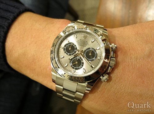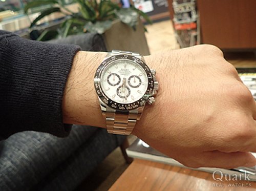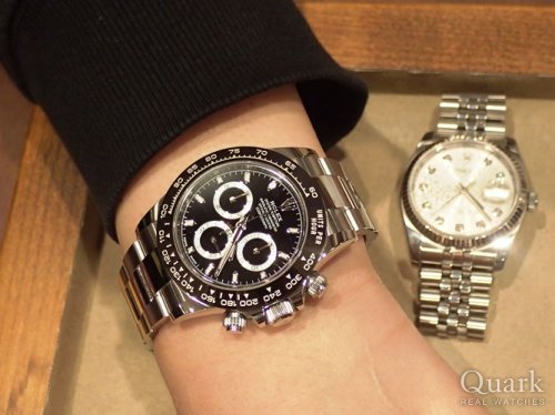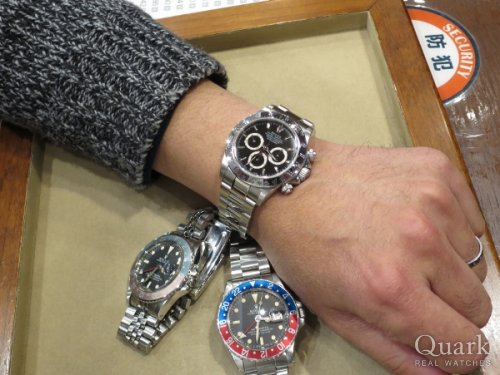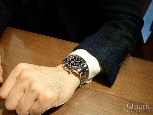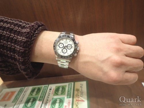 T様 いつもクォーク名古屋店をご利用頂き、誠にありがとう御座います。以前から気になっていましたデイトナとなりましたね。今までGMTマスターIIやDEEP SEAなど、ロレックスを楽しんで頂き、最終的にデイトナを手に・・羨ましい限りです。久々にお会いできると思っていたのですが、当日はタイミングが悪く、誠に申し訳御座いませんでした。前作モデルは黒文字盤に人気が集中していましたが、本モデルより特に白文字盤が人気・注目を集めています。洗練されたデザインでとても格好良いですね。新たな相棒として是非、沢山ご愛用頂ければ幸いです。今後も御時計の事でご相談などが御座いましたら、お気軽にお申し付け下さい。またY様とご一緒にお時間が御座いましたら、遊びにいらして下さい。今後とも末長いお付き合いの程、宜しくお願い致します。