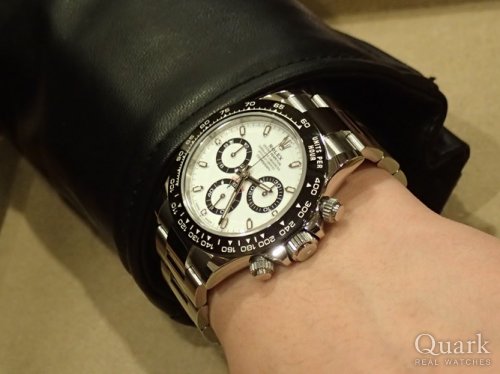 A様 いつもクォーク仙台店をご利用くださいまして誠にありがうございます。2016年に登場したDAYTONA/Ref.116500LN、白文字盤も黒文字盤も人気で、実際にご試着されると悩んでしまう方がたくさんいらっしゃいます。ファッションのポイントとしても十分に活躍してくれることと思いますし、なによりもおしゃれなA様に大変お似合いでございます。お洋服とも相性バッチリですね~、ポーズをきめていただいた瞬間の、思わず『カッコイイ』とでてしまった心の声、あれは本物です(笑)。大人気モデルでございますので、たくさんの場所で自慢してください!ご愛用いただく上でご不明点などございましたらいつでもご連絡くださいませ。お仕事が想像できないほどスタイリッシュなA様、お仕事中はデイトナの活躍回数は少ないかもしれませんが、プライベートでたくさんご愛用くださいませ。店頭にてブレス洗浄、サイズ調整を無料で承っておりますので、お近くにお越しの際はまたお店にも遊びにきてください。それではこれからも変わらぬご愛顧を賜りますよう、宜しくお願い申し上げます。