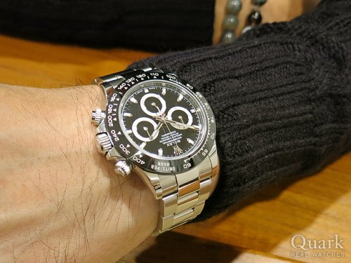 セラミックベゼルとブラックダイヤルの組み合わせが、それ以前のステンレスベゼルのデイトナとは一味違った高級感を味わえると思い、購入を決めました。
