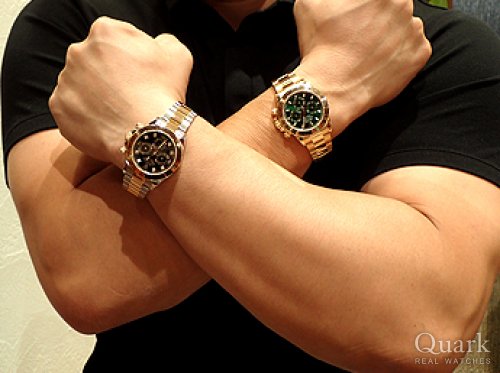 今回握力で100㌔を出した記念にロレックスを購入検討。当初はRef.116508グリーンとDAY-DATE40で迷っていたが、たまたま店員さんがRef.116508 グリーンを店頭に展示しようとしていた場面に遭遇、直感でこれだ!と思い、直ぐに購入を決めました。クォークさんに訪れて当初はRef.116508 グリーンは展示して無く、諦めて帰ろうとしていた最中の出来事でしたので、驚きと不思議な巡り合せを感じました。