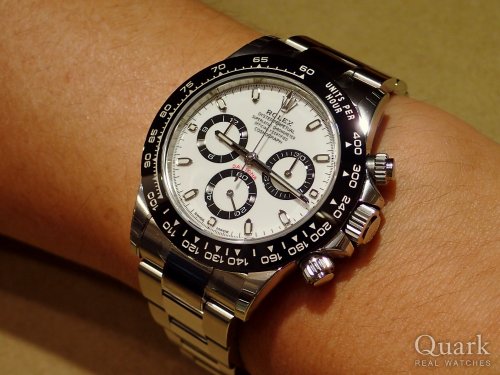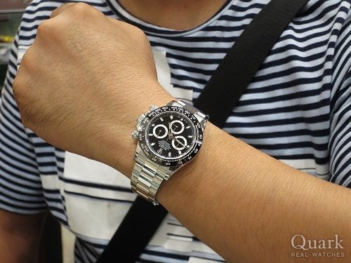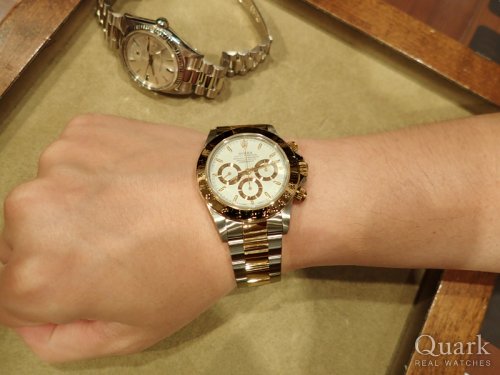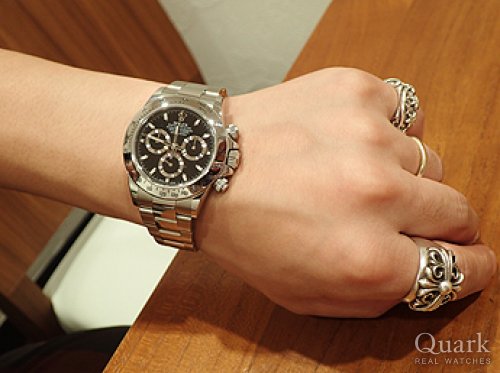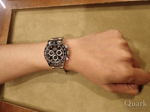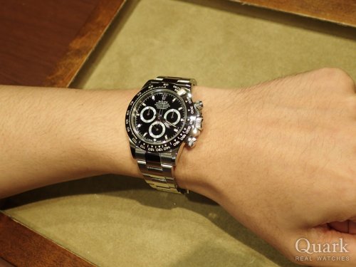 Y様 いつもクォーク横浜店をご利用くださいまして誠にありがとうございます。憧れのデイトナ、とうとう手にすることが出来ましたね!!ロレックスファンだけではなく多くの時計ファンが注目する時計でございますので、末永くご使用いただきお楽しみください。また、お褒めのお言葉まで頂戴し大変恐縮でございます。近くにいらした際は是非お立ち寄りいただき、お使いいただいてのご感想をお聞かせ願えればと思います。アフターサポートもしっかりと対応させていただきますので、今後とも変わらぬご愛顧の程、宜しくお願い申し上げます。