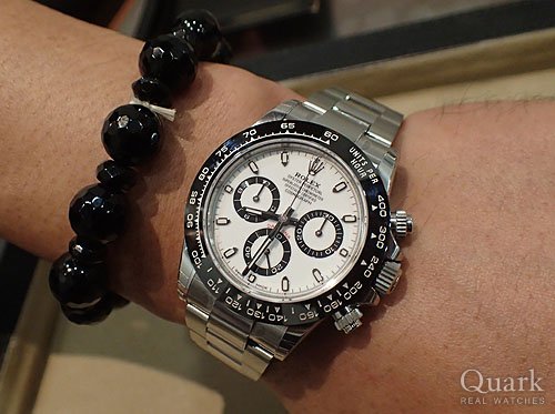 S様 この度はクォーク福岡店をご利用頂きまして、誠にありがとうございます。116500LNブラックのご購入から約1年半、今回は爽やかなホワイトダイヤル!!白と黒のコントラストが美しいモデルです。S様のアクセサリーとも相性がよくお似合いでしたよ!!ご購入まで紆余曲折ございましたが、今回も楽しくご対応させて頂きました。本当にありがとうございます。今後とも末永いお付き合いの程、宜しくお願い致します。