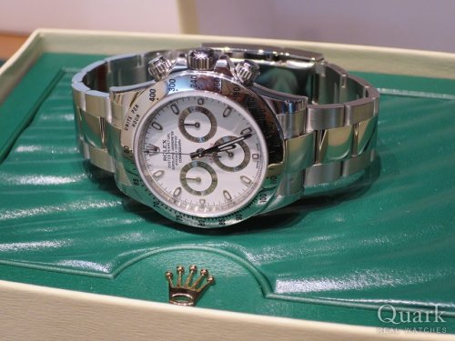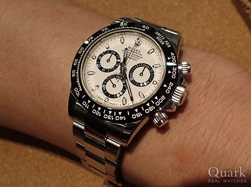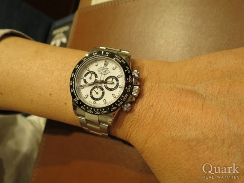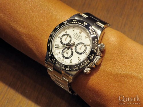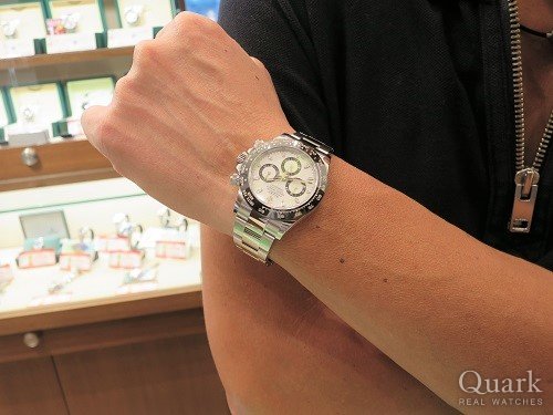 以前持っていたデイトナがSSベゼルの黒文字盤だったので、今回は白文字盤にしました。 以前は白文字盤は全く考えませんでしたが、新型になって初めて白文字盤に魅了されました。