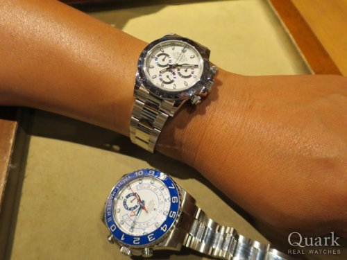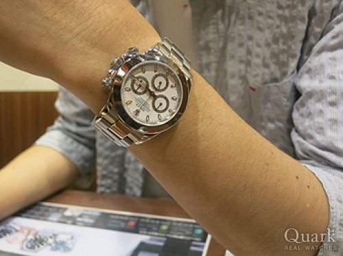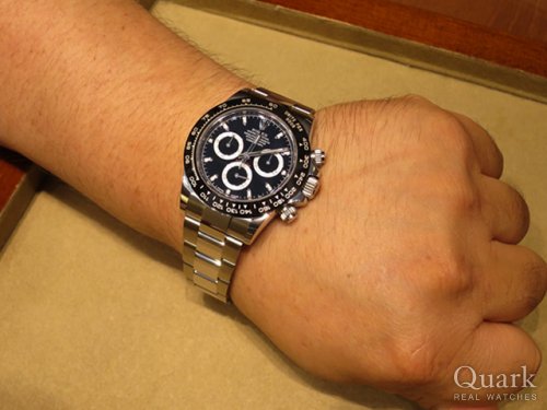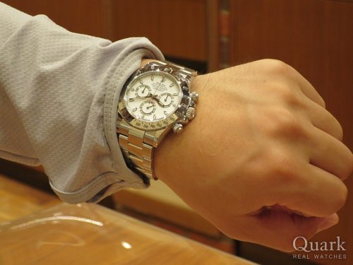 T様 この度はクォーク福岡パルコ店をご利用頂きまして、誠にありがとうございます。T様にお選び頂いた『DAYTONA / Ref.116500LN』の白文字盤は、黒のセラミックベゼルと黒縁のインダイヤルのコントラストが非常に美しく、トータルバランスがかっこいいモデルです。スポーティー且つ爽やかな印象はT様にとてもお似合いでした。『Ref.116500LN』は2016年の登場以来、価格が高騰しており、T様もご購入されるタイミングが難しかったと思いますが、ご連絡頂いたタイミングでご案内することができて私も嬉しい限りです。これから素敵なロレックスライフをお楽しみください。また、ご使用される中で気になる点やご不明な点がございましたら、お気軽にご相談ください。今後とも宜しくお願い致します。