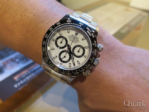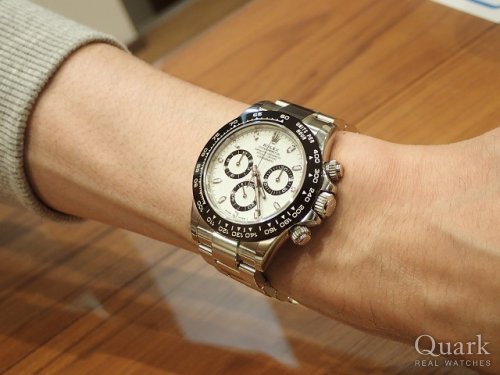 N様、この度はクォーク上野本店をご利用いただきまして誠にありがとうございます。これまでに様々なブランドの時計を所有されたN様にデイトナ(Ref.116500LN)をご紹介することが出来、私も嬉しく思っております。お選び頂きました白文字盤のデイトナはインダイヤルが黒となり、前々作のモデルRef.16520を彷彿とさせてデザインとなっております。ご使用されながら資産価値を楽しむことができるのもデイトナならではの魅力だと思います。また時計のことで何かございましたら、何なりとご相談いただければと思います。今後とも末永いお付き合いの程よろしくお願い申し上げます。