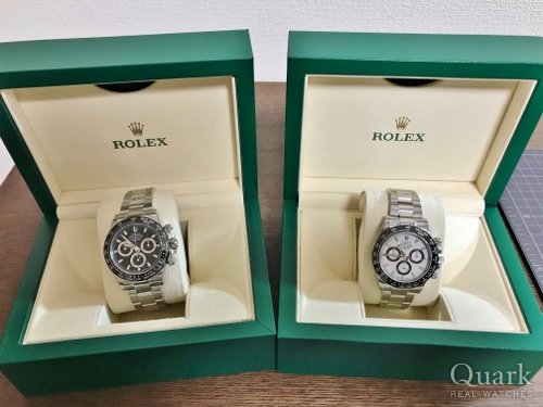 G様、いつもクォーク仙台店をご利用頂き、誠にありがとうございます。発表当初から、ずっと狙っていたデイトナを、この度ようやくご案内でき大変光栄です。在庫減少・価格高騰のタイミングで、なんとかご希望に近い状態のものをご紹介でき、幸いでした。ずっと動向を見守っていらっしゃったデイトナ、一気に白・黒両方を手にされ、実物の雰囲気はいかがでしょうか。きっと末長く気に入ってお持ち頂けることと存じます。引き続き、新作モデルなどの情報をご案内させて頂きたいと思います。今後とも、何卒宜しくお願い申し上げます。