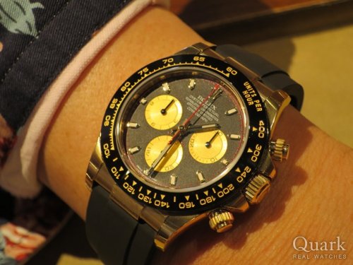 S様 いつもクォーク上野本店をご利用頂き誠にありがとうございます。今回はDAYTONA Ref.116518LNブラックシャンパンダイヤルのご購入のお手伝いが出来た事、大変嬉しく思います。金無垢ケースにセラミックベゼルを装備しロレックスが特許を取得したオイスターフレックス・ブレスを使用したRef.116518LN。2017年のバーゼルワールドで発表となりました。70年代の手巻きのデイトナを彷彿させるデザインが人気で現在でも生産数は非常に少なく入手困難なデイトナとなります。ご使用頂きしっかりとサポートさせて頂きますので今後、お時計の事で何かございましたらお気軽にご相談下さいませ。宜しくお願いいたします。