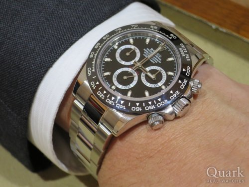 N様 この度はクォークをご利用頂きまして、誠にありがとうございます。時計をお探しの中、偶然見つけて頂いたとのことで、本当に良いものをご案内でき嬉しく思います。お選び頂きましたデイトナはロレックスの中でも人気の高いモデルです。その中でもコンビモデルはコストパフォーマンスも高く、腕元でしっかり主張してくれる風格ある時計でもあります。末永くご愛用頂ければ幸いでございます。また、ブレス洗浄などお気軽にご来店下さい。今後ともクォーク心斎橋店もよろしくお願い申し上げます。