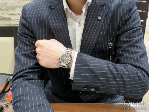 W様 この度はクォークなんば店にお越し頂き、誠に有難うございます。また、お取り寄せなども含めまして二度もご足労を頂き、重ねてお礼を申し上げます。デイトナは希少価値性や今後の資産価値にも期待できる1本ですが、装いを問わず幅広く愛用できる良き相棒としてもお楽しみ頂けると思います。今後におきましてもW様にご満足を頂けます様、精一杯のご対応に努めて参ります。今後ともクォークなんば店を宜しくお願い致します。クォークなんば店 店長 杉崎