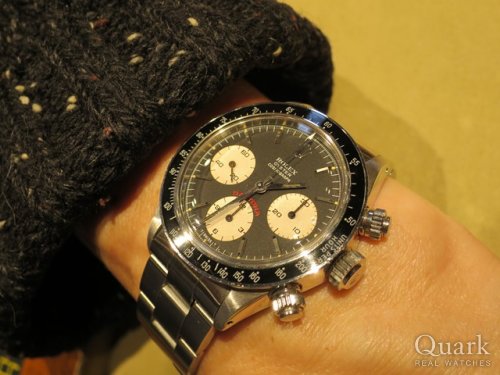 U様 いつもクォーク上野本店をご利用頂き誠にありがとうございます。前回のRef.16520A番に続き今回はDAYTONA Ref.6263黒BIGのご購入のお手伝いが出来た事、大変嬉しく思います。1970年にスクリューロック式のプッシャーを搭載し発表され手巻きのデイトナとしては最終型モデルとなります。歴代のデイトナの中でもプラスチックチックベゼルのタキメータースケールを装備したRef.6263が最も人気が高く、ここ数年の価格を見ても右肩上がりとなっております。U様のコレクションにまた1つ希少性の高いお時計が加わった事に嬉しさを感じております。ご使用頂きしっかりとサポートさせて頂きますので今後、お時計の事で何かございましたらお気軽にご相談下さいませ。宜しくお願いいたします。