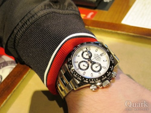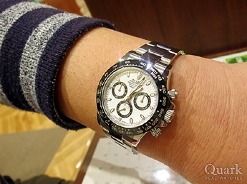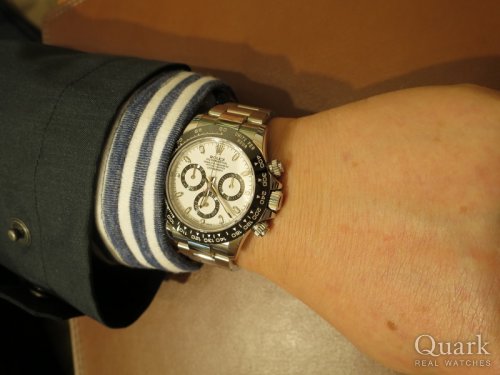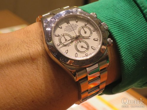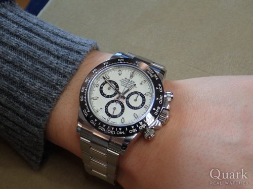 M様 いつもクォーク名古屋店をご利用頂き、誠にありがとう御座います。また買いに来ます!と言って頂いてから想像以上に早くご連絡を頂いて、ビックリしてしまいました!(笑)今回もM様のご購入のお手伝いをさせて頂く事が出来、とても嬉しく思います。Ref.116500LN白文字盤のデザイン性の格好良さは別格で、ご覧頂いたら欲しくなってしまいますよね!シャープな形状で大き過ぎないサイズ感が、M様にとてもしっくりと着ていましたので、気に入って頂いた姿を見て私も嬉しく思いました。今後もご使用される中で、ご不明な点などが御座いましたら、私までご連絡下さいませ。またブレス洗浄やご試着だけでも構いませんので、お時間が御座いましたら、是非遊びにいらして下さいね!またM様にお会い出来る日を楽しみにしております。