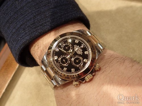N様 いつもクォーク仙台店をご利用くださいまして誠にありがとうございます。まずは、15周年おめでとうございます。記念すべきお買い物のお手伝いができ大変光栄でございます。イエローゴールドとブラックダイヤル、天然のダイヤモンド、まさにお祝いにふさわしいハイグレードな一本でございます。ゴージャスさの中に紳士的なイメージをしっかり感じさせてくれてN様に大変お似合いでございます。サブマリーナーとご一緒にいつまでもご愛用いただけましたら幸いでございます。これからもN様のロレックスライフが素敵な時間となりますよう、努めて参りますのでお困りのことがございましたらいつでもご連絡くださいませ。N様のお仕事をこれから先もさらに大きく飛躍されますよう心よりお祈り致します。15年というお時間が『楽しくて仕方ない』と仰っておりましたので、心配なんて不要でございますね(笑)。店頭にてブレス洗浄、サイズ調整を無料で承っておりますので、またお店にも遊びにきてくださいね。仕事が楽しくて仕方ない高橋がお待ちしております(笑)♪それでは今後とも末永いお付き合いのほどよろしくお願い申し上げます。