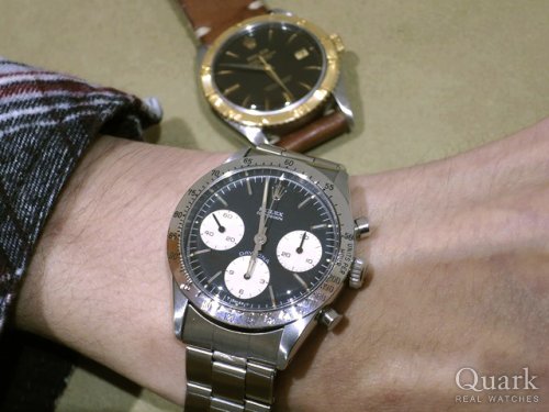 以前からデイトナは気になっていたのですが、具体的に検討はしていませんでした。今回たまたま立ち寄ったクォークさんでデイトナのコンビ、Ref.16523 黒文字盤を見た時に一目惚れ。購入意欲に火が点きました。それにROLEXのデイトナならこれから持つ上で、価値としても間違いないと思い。