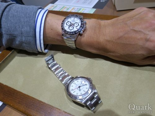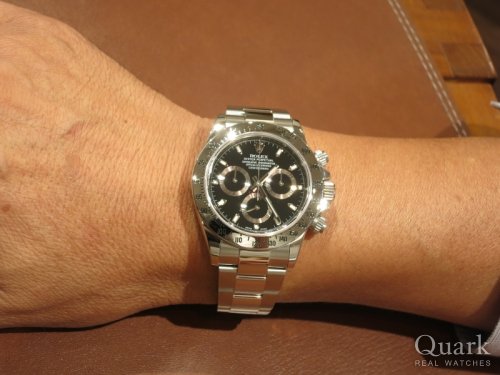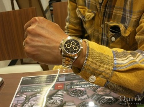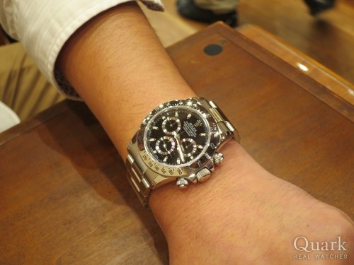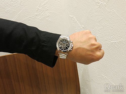 H様 いつもクォークをご利用頂きまして、誠にありがとうございます。お忙しい中、時間を作ってご来店頂きまして恐縮でございます。ご購入頂きましたデイトナは同モデルの中でも後期にあたる仕様であり、所有する満足度もより高い1本だと思います。デザイン面でも現行とは異なるステンレスのベゼルならではの高級感をお楽しみ頂けるモデルです。末永くご愛用頂ければ幸いでございます。気になる部分やご不明点などございましたら、お気軽にご連絡下さい。今後ともクォーク心斎橋店もよろしくお願い申し上げます。