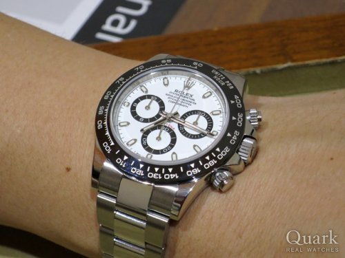 Y様 いつもクォークをご利用下さいまして、誠にありがとうございます。ついに手巻きでございますね。以前より気になられていたデイトナでしたが、更なる品薄と価格高騰により、なかなかご紹介できずにおりました。今回のお時計ご購入までの展開につきましては何かのご縁を感じつつ、何処かドラマチックで私の記憶にもしっかりと刻まれるご対応となりました。本当におめでとうございます!近年はスタンダードモデルをメインとしておりましたが、久しぶりにスポーツモデルをご紹介させて頂くことができたことは私自身としても大変嬉しく感じております。今後ともY様のご希望にお応えできるよう、努めて参りますのでどうぞ宜しくお願い致します。次回はスタンダードモデルですね!新たなモデル、デイトナの世界を存分にお楽しみ下さいませ!末長いお付き合いの程、宜しくお願い致します。クォーク上野本店 佐藤