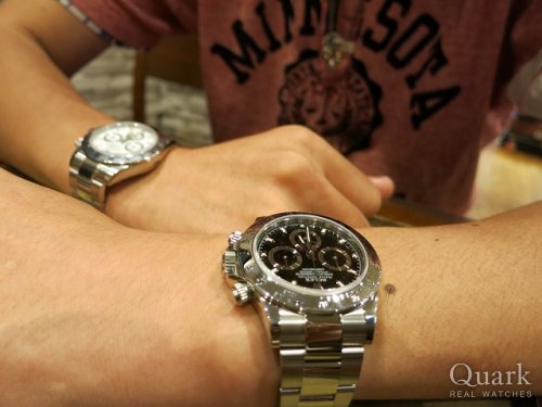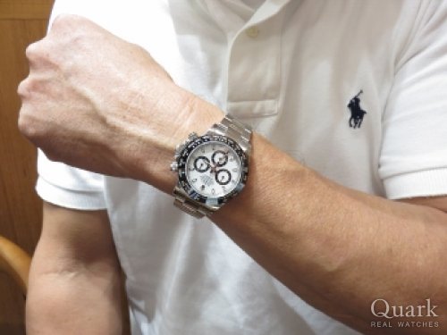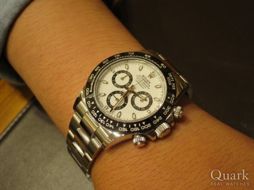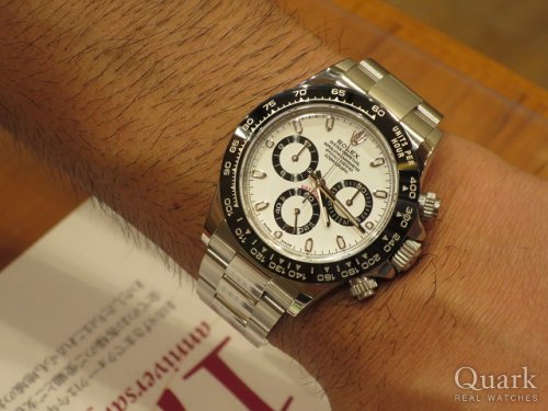 I様 いつもクォーク新宿店をご利用頂き誠にありがとうございます。前回YGコンビのデイトナをご購入頂き今回で2本目のデイトナですね。2016年に発表された新型デイトナRef.116500LNホワイト文字盤は、よりスタイリッシュでスポーティーなデザインがとても魅力的です。未だに流通量が非常に少ない中、良い個体をご案内させて頂けた事を嬉しく思っております。I様の愛車にピッタリなデイトナを末永くご愛用下さい。また、ブレスレットの洗浄や調整なども無料で行っておりますのでお気軽にお立ち寄りください。是非I様の愛車とデイトナのコラボを拝見させて頂きたいです!今後ともクォーク新宿店を宜しくお願い致します。 クォーク新宿店 宮下