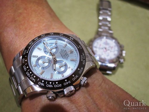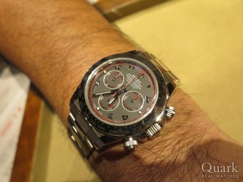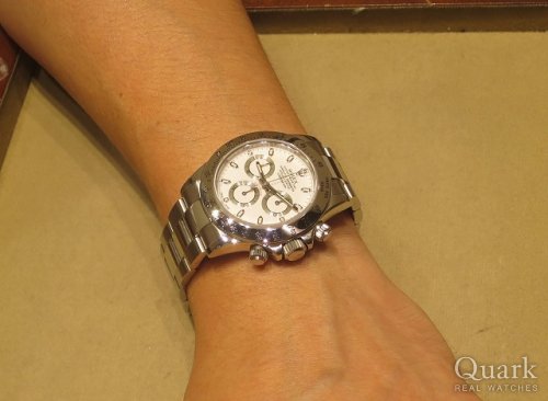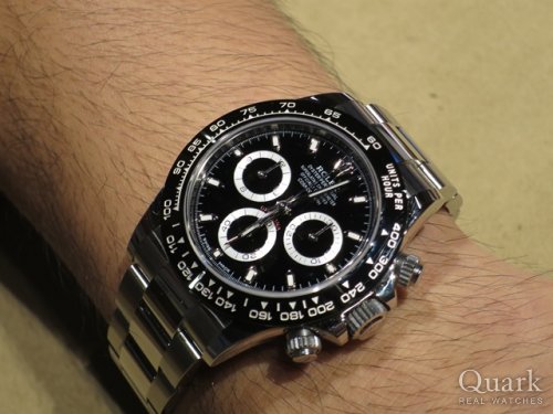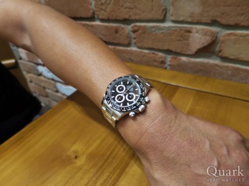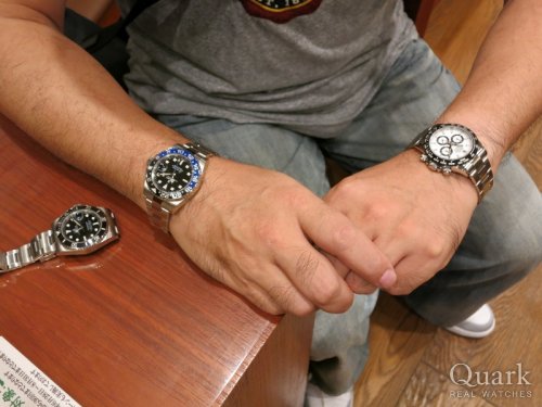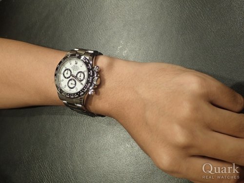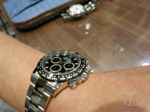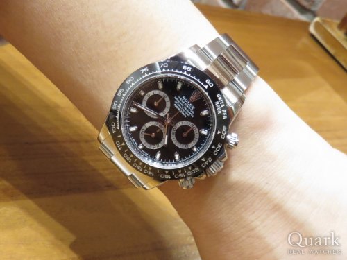 F様、この度はクォーク神戸店をご利用頂きまして誠に有難うございました。ご購入頂きましたデイトナRef.116500LN(黒)は、前モデルのRef.116520からベゼルの素材がステンレス製からセラクロム製に変わっており、傷等もつきにくく以前より派手な印象なども無いので、様々なシーンでお使い頂けるモデルです。ベゼルと文字盤のブラックカラーが相まって、男らしくまさに激シブですよね!!笑 F様にとてもお似合いでございました。末永くご愛用頂けましたら幸いです。今後もご指名頂けるようしっかりとサポートさせて頂きますので、何かご要望などございましたら私井内までお申し付け下さいませ。また、ブレスレットの洗浄及び調整も無料で行っておりますので、お近くに来られた際には是非遊びにいらして下さい。心よりお待ちしております。
