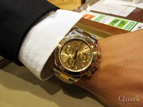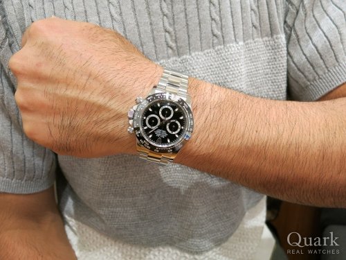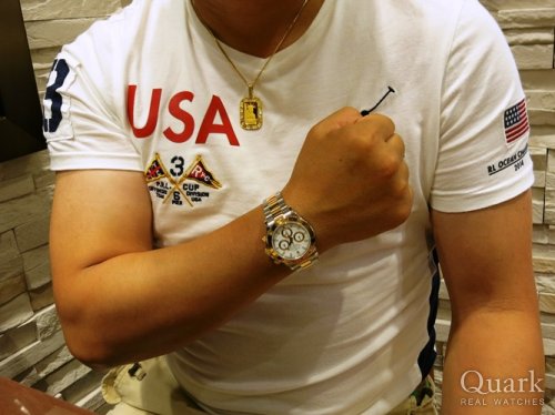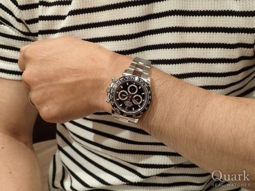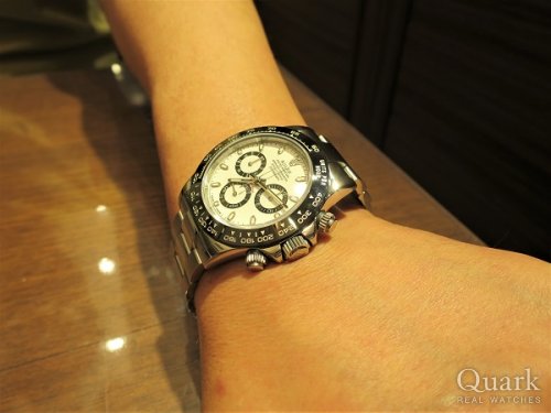 ロレックス サブマリーナーRef.116610LN を6年間使用し、大変満足していましたが、クォーク横浜店に立ち寄り、デイトナRef.116500LN(白)をご紹介いただき、黒いベゼル部分が気に入り、購入致しました。 実際に腕に着けた時の満足感は格別です。