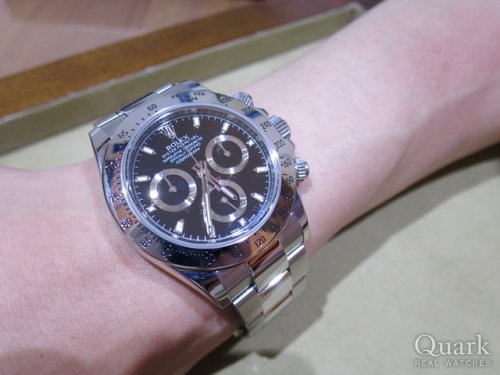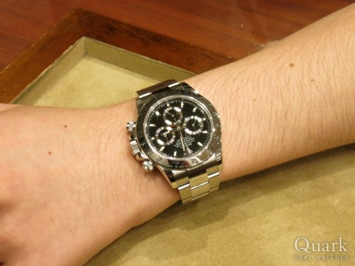 N様 この度は、私共クォークをご利用頂きまして誠に有難う御座います。Ref.116520(黒文字盤)新品を気に入っていただけて、とても嬉しく思います。日本国内でも、凄く在庫数が少なくなっているモデルでございますので、タイミング良くご検討いただけたと思います。N様にとてもお似合いでございましたので、お仕事やプライベート等で存分にお楽しみ下さいませ!!今後とも末永いお付き合いの程、宜しくお願い申し上げます。クォーク横浜店 杉野
