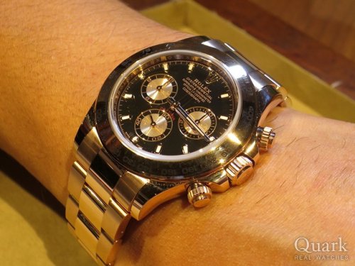 M様 いつもクォーク上野本店をご利用いただき誠にありがとうございます。ご購入いただきましたRef.116505は、お時計全体にエバーローズゴールドを使用した気品あふれるモデルでございます。また、ブラックの文字盤は人気が高く、インダイヤルのピンク色との絶妙なバランスも魅力の1つです。これからご使用いただく上で何かご不明な点等ございましたらお気軽にお申し付けくださいませ。お近くにお越しの際はぜひ遊びにいらしてください。今後とも末長いお付き合いの程、どうぞ宜しくお願い致します。クォーク上野本店 岩間
