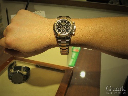 K様 この度は、クォーク心斎橋店にてご購入頂きまして誠にありがとうございます。スポーツモデルの中でもデイトナは人気の高いモデルです。タイミング良くお時計をご案内ができて本当に良かったです。K様にすごくお似合いでしたので、末永くご愛用頂ければ嬉しく思います。又、ブレスレットの洗浄も調整なども無料で行っておりますので、お近くに来られた際は是非クォーク心斎橋店にお立ち寄り下さいませ。今後ともクォーク心斎橋店を宜しくお願い致します。 クォーク心斎橋店 宮土