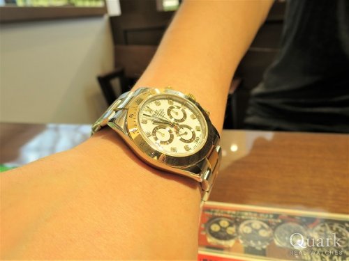S様 この度は当店をご利用下さいまして、誠にありがとうございます。18kイエローゴールが使用されたデイトナはスポーティーさに華やかさがプラスされた人気のモデルでございます。特にこれからの季節は大活躍してくれると思います。今後はしっかりとアフターサービスに努めさせて頂きますので、ご使用頂く上で何か気になる点等ございましたら、お気軽にお申し付け下さいませ。末永いお付き合いの程、宜しくお願い致します。クォーク上野本店 佐藤