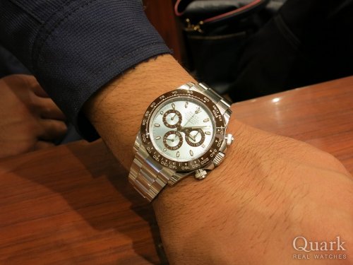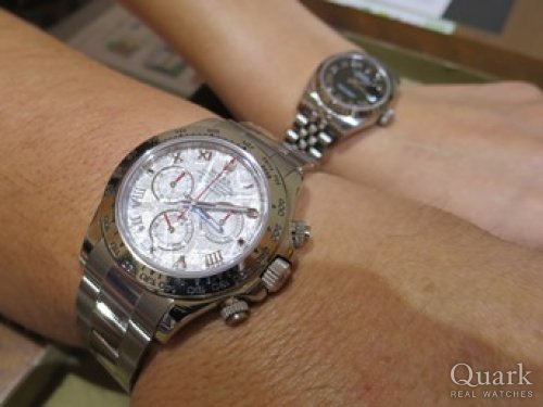 K様、いつもクォーク上野本店をご利用頂き誠に有難うございます。今回ご購入頂きましたデイトナ メテオライトローマは生産中止になった現在も、今なお衰えることのない人気モデルです。この度はご紹介までにお時間を頂戴し申し訳ございませんでした。ようやくご案内することができ、また、メテオライトの色目も気に入っていただけたようで、私も大変嬉しく思っております。今後もしっかりとサポートさせて頂きますので、ご用命の際はお気軽にお申し付け下さいませ。本日は誠に有難うございました!