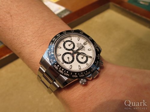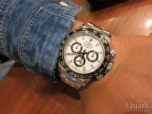 発売当初から気になっていて、時計を見る機会が少なかったのですが、白文字盤を見て気に入ったので今回購入しました!旧型デイトナとも見比べましたが、新型デイトナの方がデザインが好みです!