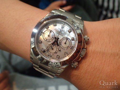 A様 この度はクォーク仙台店をご利用くださいまして誠にありがとうございます。2016年発表の新型デイトナはまだまだ流通量が少なく、人気が高く、常に店頭へ並べることが出来ていないモデルでございますが、このGW期間中にご予約無しで今回の1本と出会えたことは、私も運命だと感じております。約半年間、色々とお悩みになられたことと存じますが、これでスッキリしましたね笑。お仕事での活力に加え、奥様とのペアロレックスでのお出かけなど、これからは楽しみが沢山待っておりますのでご堪能頂けましたら幸いでございます。近くへお越しの際はお気軽にお立ち寄りくださいませ。今後とも末長いお付き合いの程、宜しくお願い申し上げます。