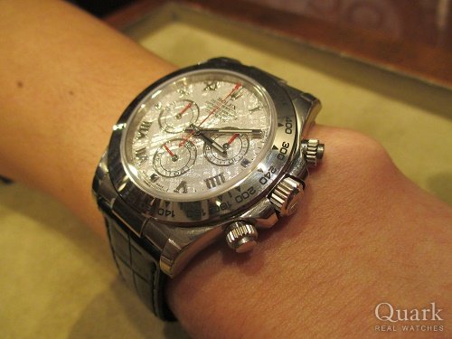 これまでクォークで数回手巻きデイトナを紹介していただきましたが、あいにく自分好みではなく見送りました。やっとシルバーの色合いや雰囲気が気に入るものが見つかり購入に至りました。