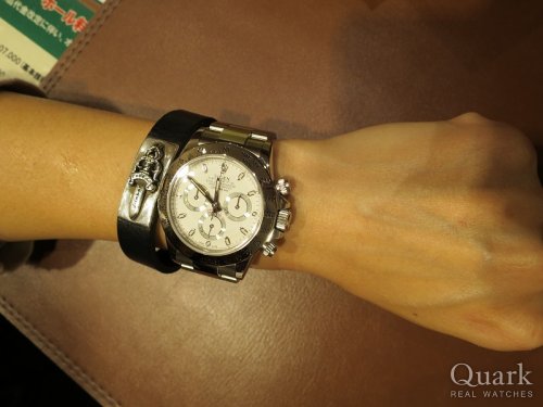 K様 この度もクォーク梅田店をご利用頂きまして、誠に有難うございます。また私の顔も覚えて頂き、非常に嬉しかったです。今後も私がしっかりご対応させて頂きますので何かあればいつでもご相談下さい!奥様にデイトナの白!女性でデイトナを着用されている方も少ないので、カッコいいですね!クロムハーツのブレスレットも非常にお似合いでした!!是非、ガンガンご使用下さいませ。またご来店頂けるのを楽しみにお待ちしております。今後とも、クォーク梅田店を宜しくお願い致します。  クォーク梅田店 辻 聡史