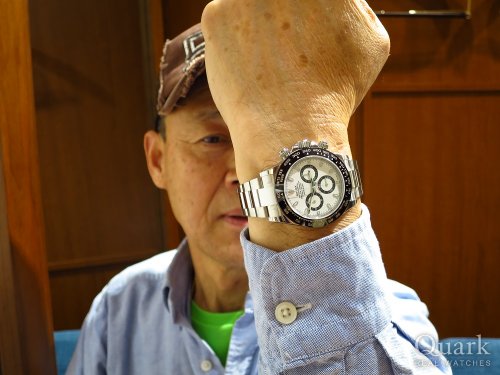 T様 この度はクォーク梅田店をご利用頂き、誠にありがとうございます。数ある時計店の中から弊店をお選び頂いた事心より感謝致しております。お選び頂いた、新型デイトナ116500LNは市場でも、ほとんど見かけませんので注目度は抜群です!高級感漂うブラックのセラミックベゼルと、ホワイト文字盤のコントラストが新型デイトナ最大の魅力です。まさに、一生モノに相応しいモデルですので、末永くご愛用頂ければ幸いです。お持ちのコレクションとの着け替えを楽しんでください!末永くご愛用頂けるよう、私も精一杯サポートに努めさせて頂きますので、ご相談等が御座いましたら、お気軽にご連絡下さいませ。関西へお越しの際は、弊店へ遊びにいらしてください。T様のまたのご来店を心よりお待ち致しております。 クォーク梅田店 川田